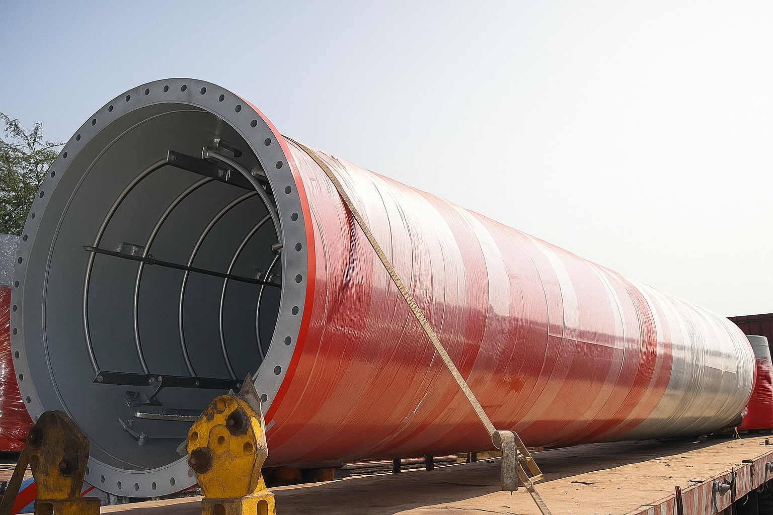 A tower for a wind mill comprises of number of tapered cylindrical sections which are subdivided in two or more elongated shell segments. Tower flanges are used for combining two shell segments by tightening together through bolts.